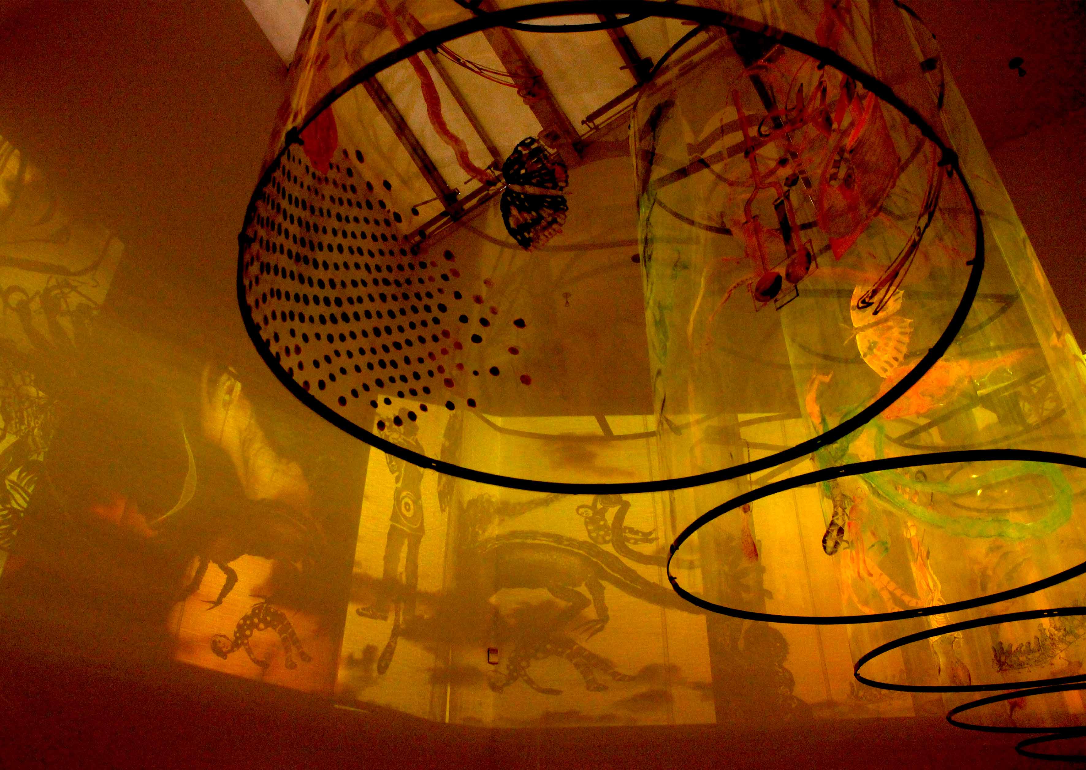 À l’aide d’icônes féminines de la mythologie indienne (Radha, Sita) ou occidentale (Medée, Cassandre) ou bien de personnages comme Alice au pays des merveilles, Nalini Malani explore la condition féminine d’hier et d’aujourd’hui.